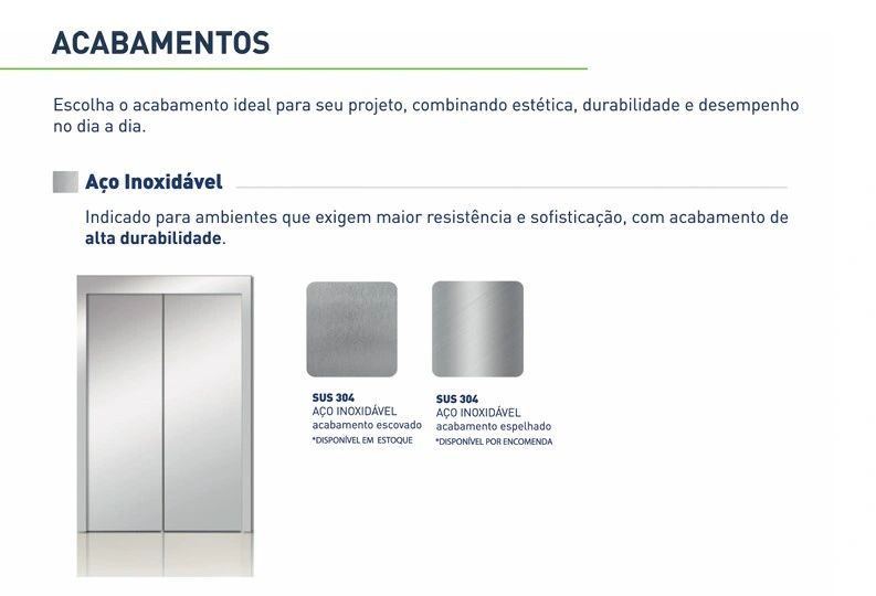 As portas de elevadores são uma das características mais essenciais em projetos de acessibilidade. Para nossos clientes residenciais e comerciais, elas não apenas garantem a segurança, mas também oferecem um acesso simples e eficiente. A escolha correta das portas é fundamental para proporcionar uma experiência confortável e segura, especialmente para aqueles que necessitam de um auxílio extra em sua mobilidade.